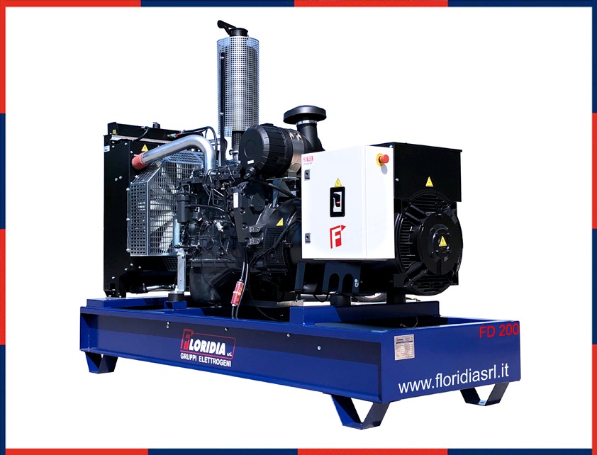 Diesel engine driven generating set mounted on a electro welded steel base with anti vibration mounts, fuel tank incorporated, battery lodged in the base, equipped with automatic start control panel complete with automatic battery charger device having the function to start the generator after a few seconds in the event of a mains supply interruption and vice versa. It also has the function of warning and protection against the common engine and alternator faults.
